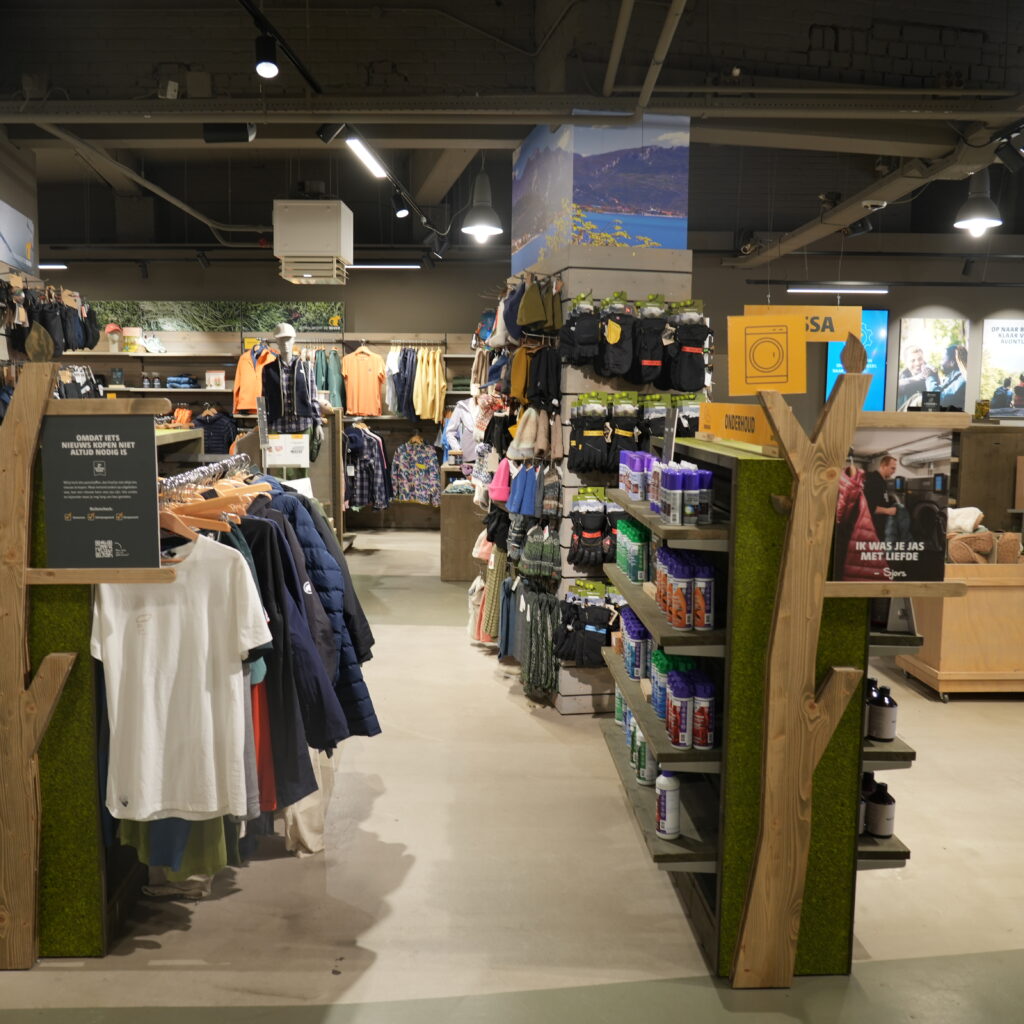 “Wat onze winkel uniek maakt, is dat het geen standaard, rechttoe rechtaan indeling heeft. Elke Bever-winkel is hetzelfde ingedeeld: van minder technisch naar zeer technisch. Bij binnenkomst vind je de kleding, inclusief de nieuwste collectie. In het midden liggen de accessoires en achterin kom je bij de slaapzakken en kampeerspullen.