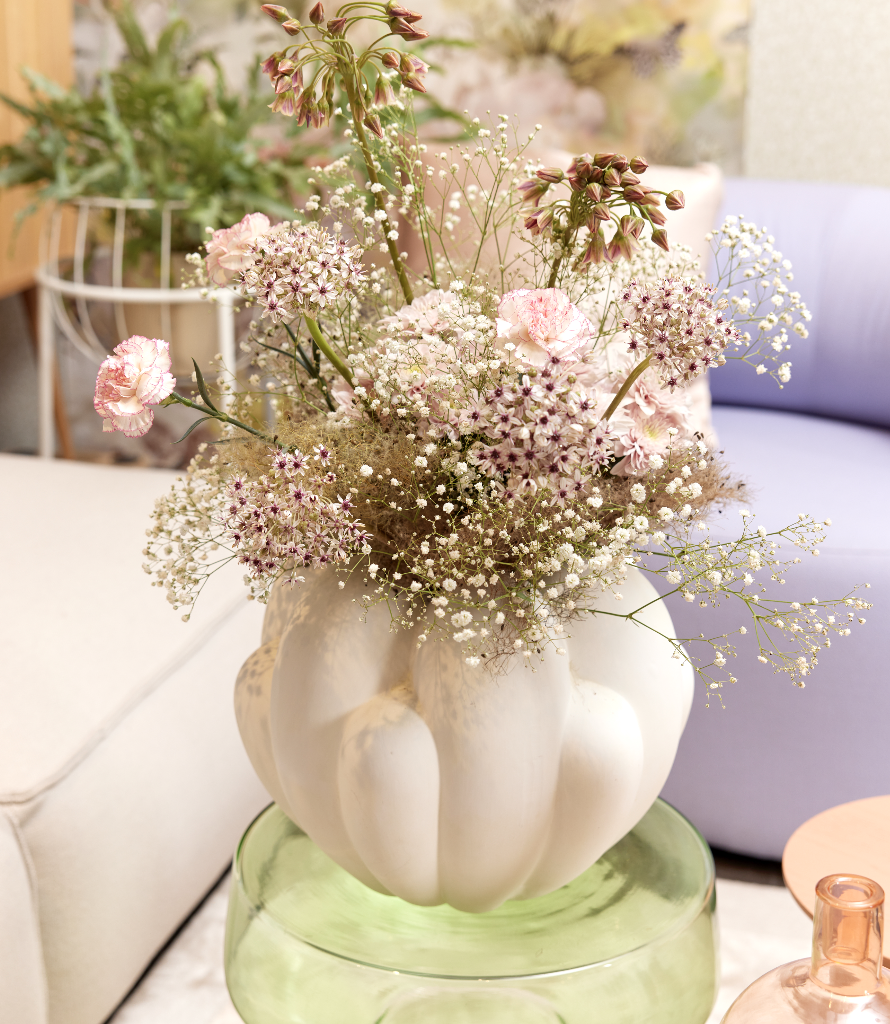 Soms lopen muur en vloer ogenschijnlijk in elkaar over door het gebruik van dezelfde zachte patronen, zoals bij behang en vloerbedekking van Moooi. Deze dessins worden, net als de materialen, gebruikt om de ruimte te verzachten.