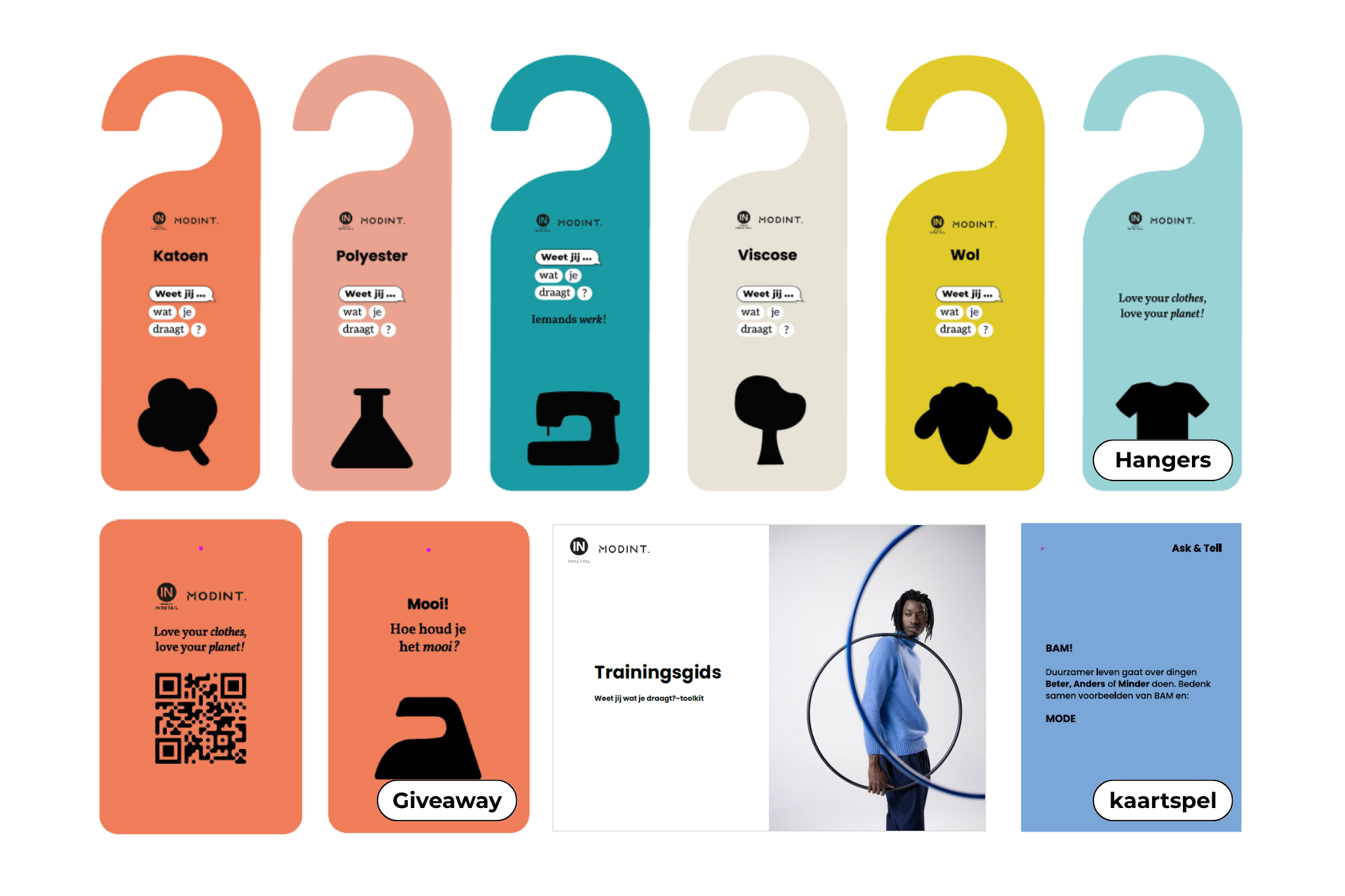 De Weet jij wat je draagt?-toolkit bevat fysieke tools en trainingsmateriaal om makkelijk met klanten in gesprek te gaan over duurzaamheid. De toolkit bevat hangers met opvallende teksten en QR-codes. Die prikkelen én nodigen uit tot een gesprek. In de trainingsgids lees je hoe je dat gesprek slim aanpakt en met het kaartspel oefen je het gemakkelijk én leuk met je team. Je klant krijgt ook een kleine giveaway bij de kassa, die uitnodigt om de QR-code te scannen. Zo ontdekt jouw klant hoe hij zijn kleding langer mooi houdt.