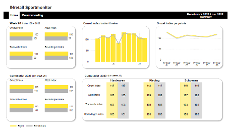 Benieuwd naar specifieke marktcijfers zoals omzetontwikkeling per week, specifiek voor offline en online omzet? Neem nu deel aan de INretail Sportmonitor en ontvang een inlog voor een dynamisch dashboard met daarin verdiepende sturingsinformatie.
