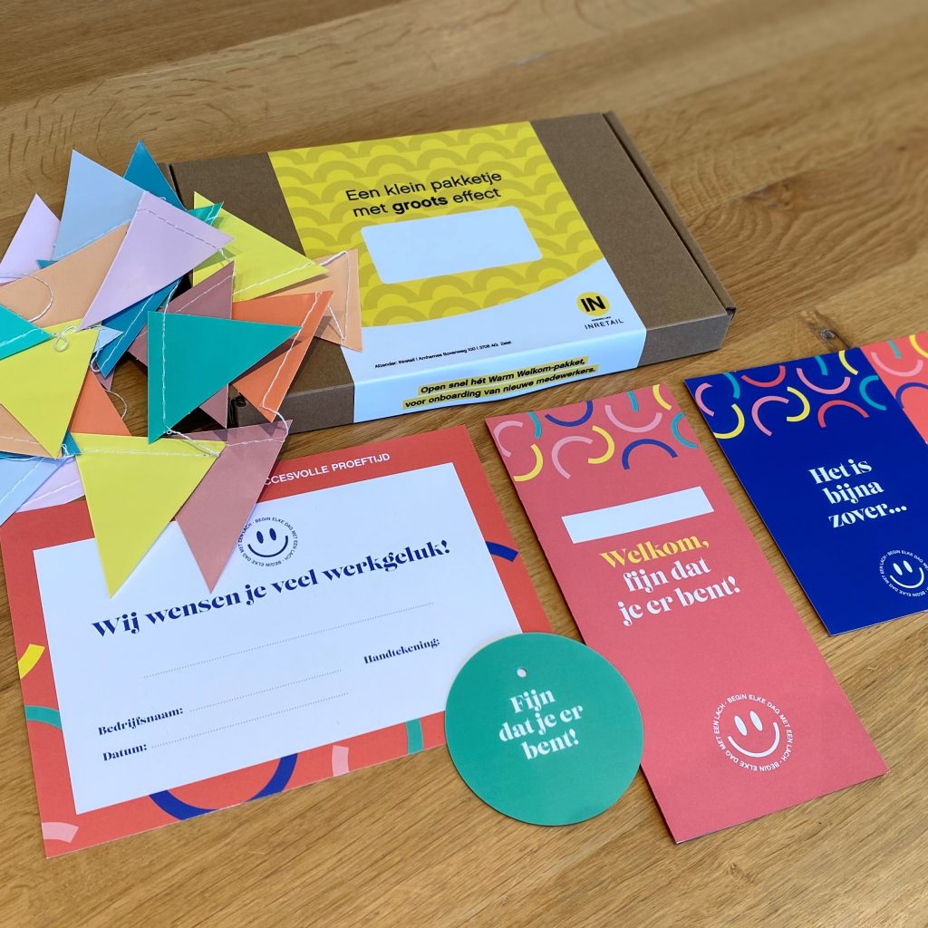 Om tijdens de belangrijke periode tussen tekenen arbeidscontract en einde proeftijd extra te laten zien hoe leuk en fijn het werken in jouw winkel is kan je dit Warm Welkompakket gebruiken. Voor elk moment een leuke attentie: