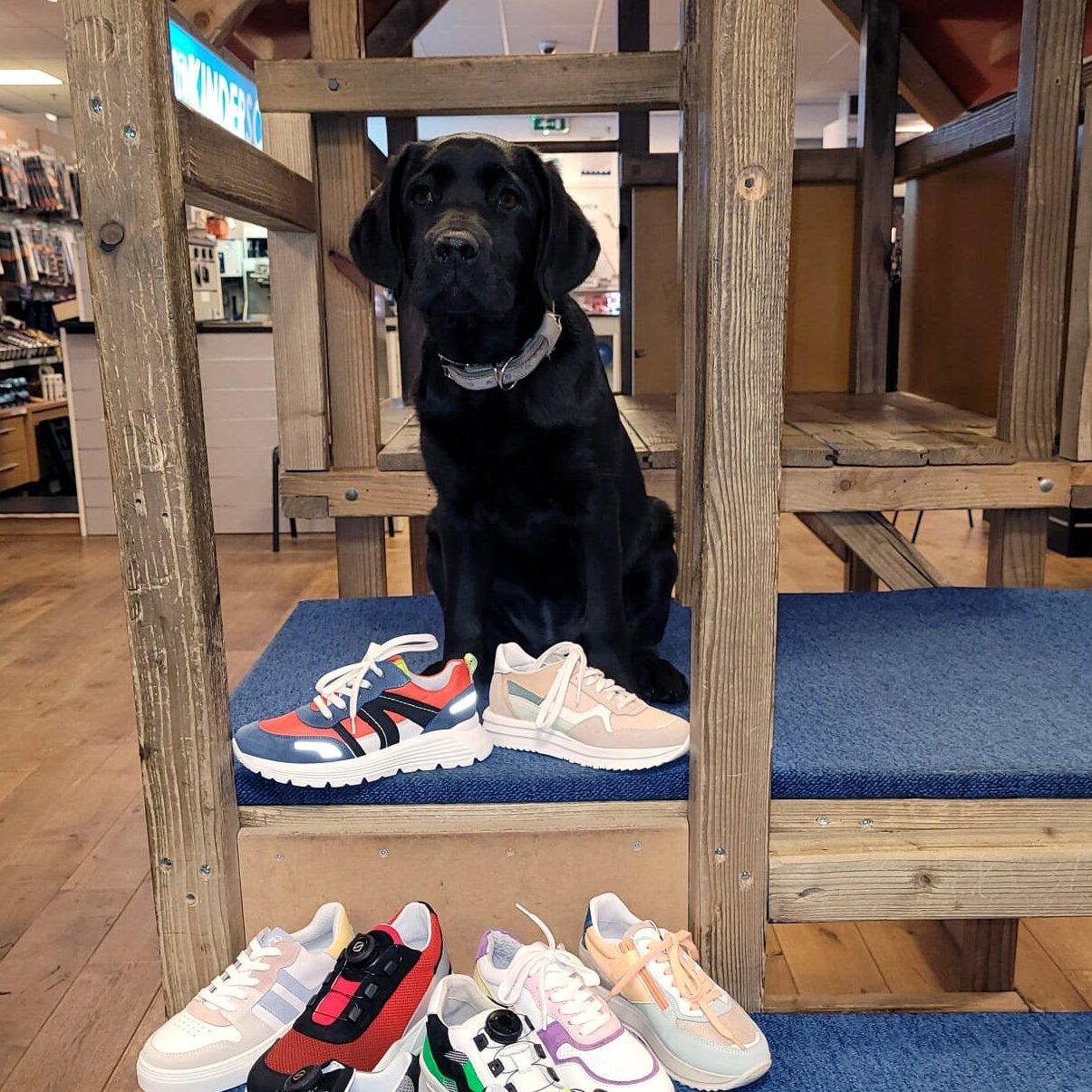 Daarnaast hebben we in de winkel zelf een speelhuisje staan voor kinderen. Alles bij elkaar zorgt ervoor dat de kinderen het een feestje vinden om hier te komen, en voor de ouders dan automatisch ook. Over een feestje gesproken: door de verhoogde catwalk in de winkel kunnen onze jonge bezoekers goed hun schoenen testen. Voor ons maakt dat het helpen ook makkelijker: we hoeven door de verhoging minder diep te bukken. Fijn op ergonomisch gebied!